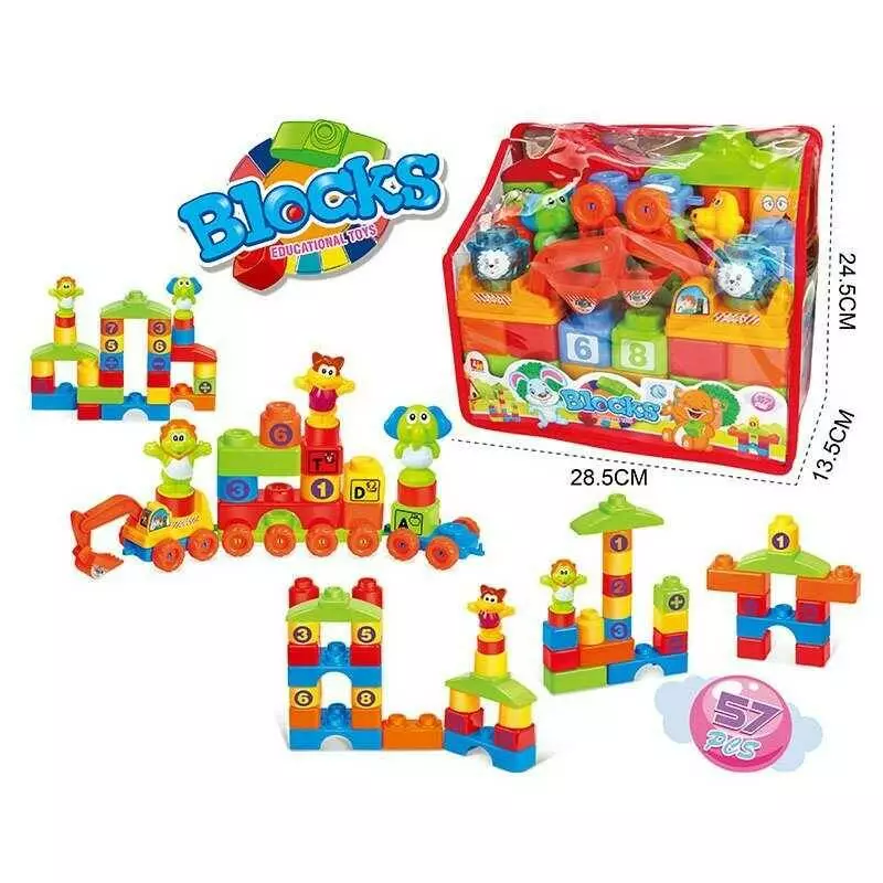 Конструктор 3028 (24/2) 57 елементів, машинка, кумедні фігурки, блоки з цифрами, в сумці