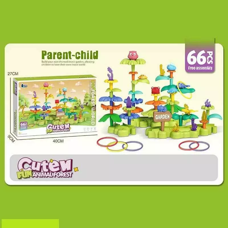 Конструктор 389-2 (24) "Квітковий сад", 66 деталей, кільцекид, фігурки тваринок, звивиста зелена основа, в коробці
