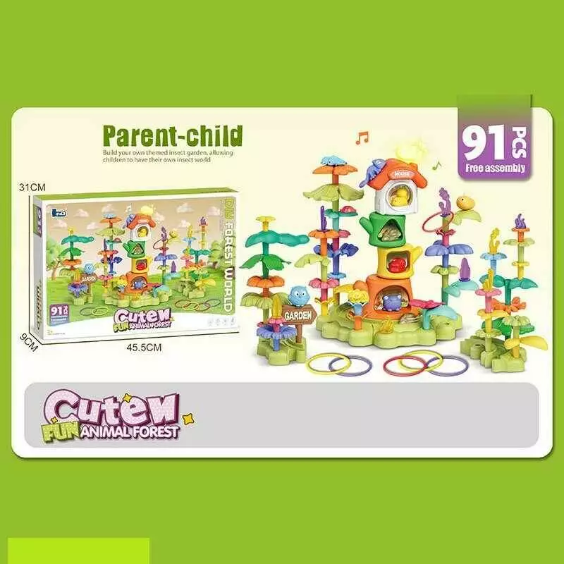 Конструктор 389-3 (18) "Квітковий сад", 91 деталь, кільцекид, фігурки тваринок, зелена основа, в коробці