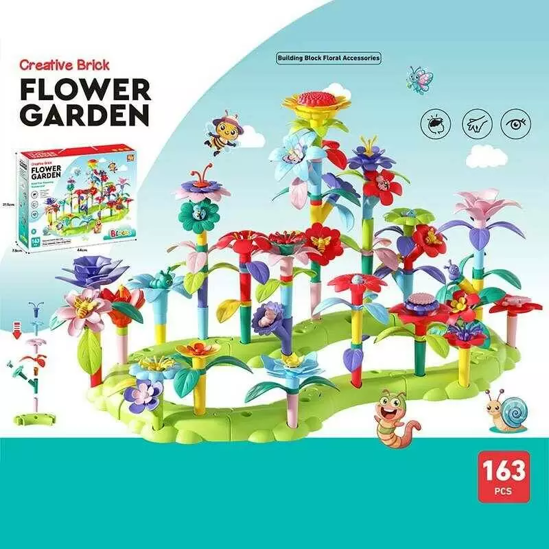 Конструктор 9034 (20) “Квітковий сад”, 163 елементи, звивиста зелена основа, квіти, листочки, стебла, в коробці