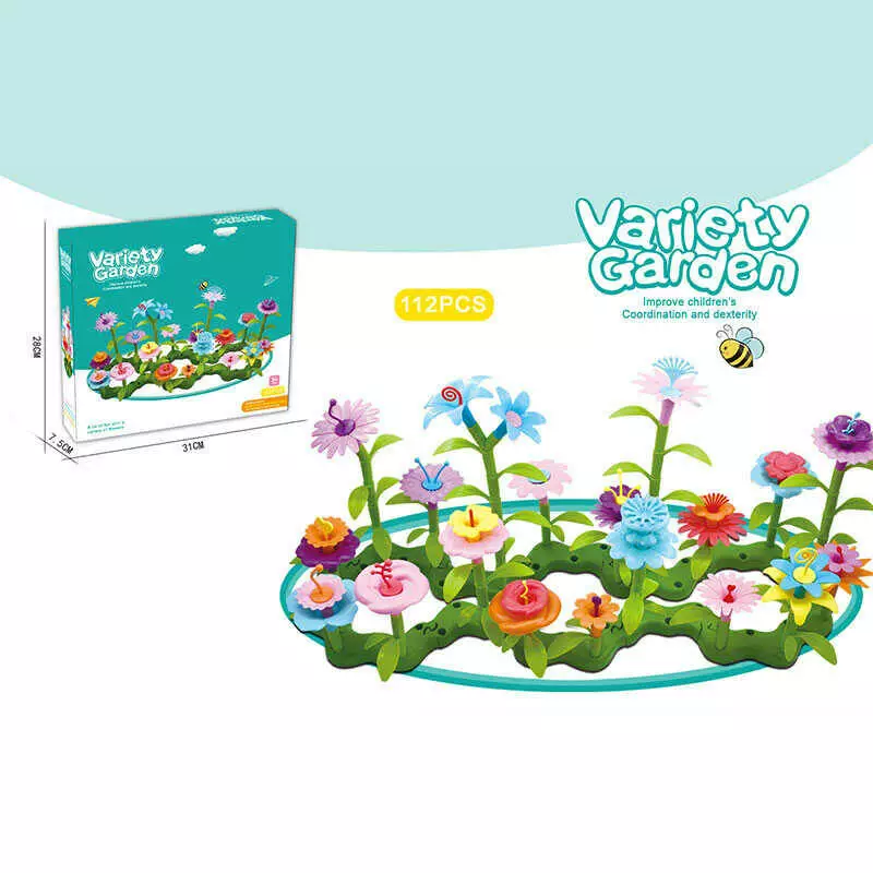 Конструктор B 6969-3 (36/2) “Квітковий сад”, 112 елементів, звивиста зелена основа, квіти, листочки зі стеблами, в коробці
