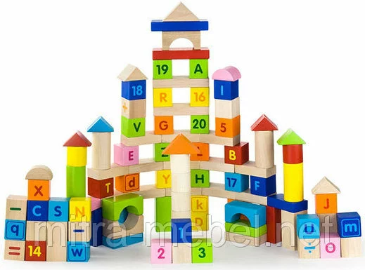 В наборе 100 блоков разной формы: кубики, пирамидки, цилиндры, арки