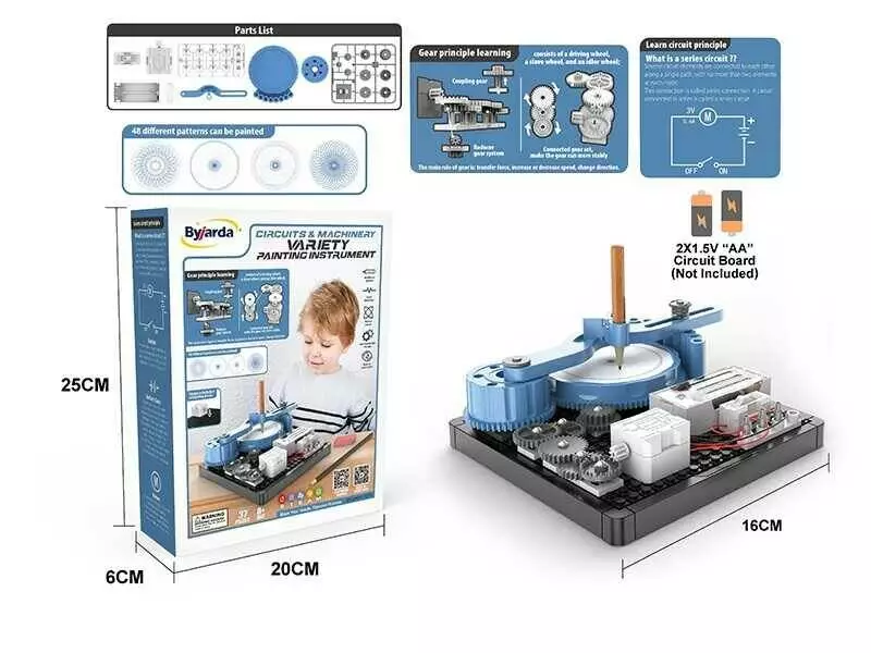 Конструктор електронний DL 0101 (48) “Спірограф”, 37 елементів, 48 візерунків, QR-код з відео майстер-класом, на батарейках, інструкція, в коробці