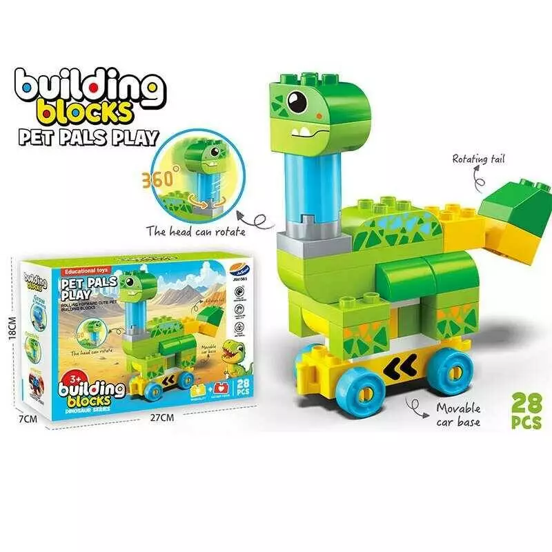Конструктор JS 613 B3 (72/2) “Динозавр”, 28 елементів, голова обертається, їздить, основа на коліщатках, рухомий хвостик, в коробці