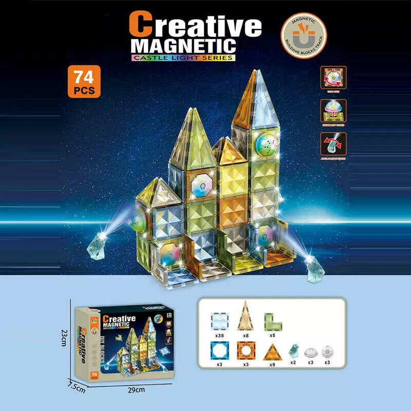 Магнітний конструктор E 138 (18) 74 деталі, 6 типів деталей, підсвічування, в коробці