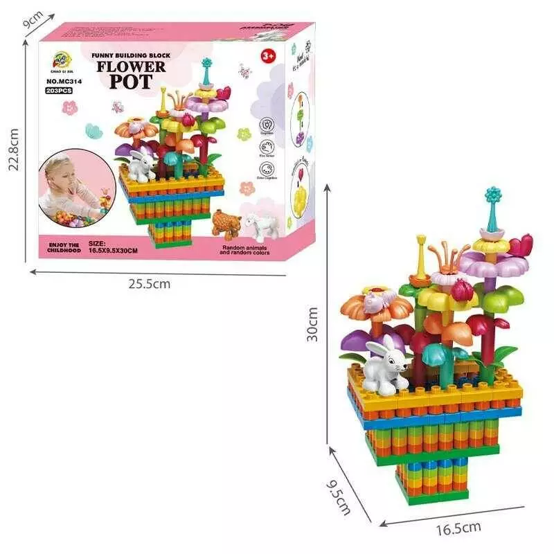 Конструктор MC 314 (48) "Квітковий вазон", 203 деталі, висота 30 см, фігурка тваринки, в коробці