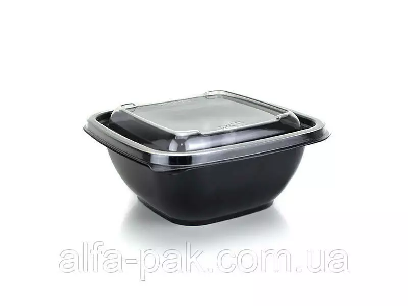 Контейнер 375 мл черный + крышка 126*126*13 мм прозрачная