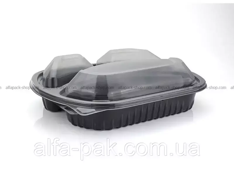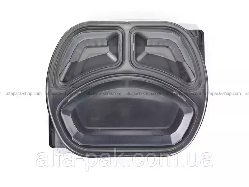 Контейнер черный на 3 секции с крышкой- это удобная и практичная