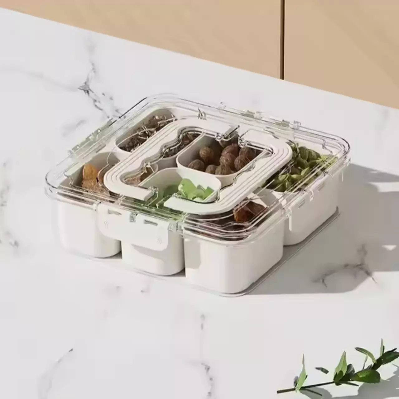 Піднос оснащений 6 відділеннями, які дають змогу зручно розділяти
