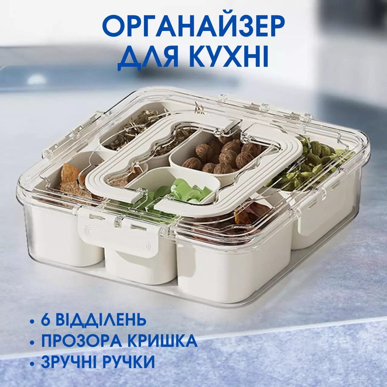 Органайзер для кухні з кришкою і ручками стане чудовим рішенням для