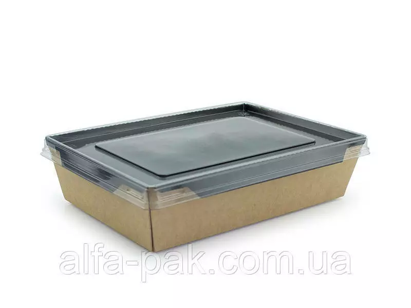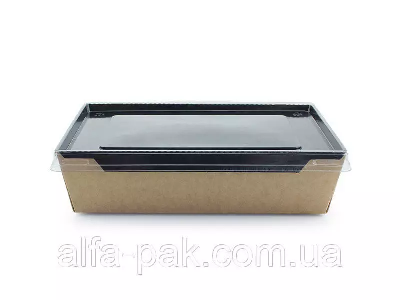 Контейнер прямоугольный крафт-черный с ПЭТ крышкой 1200 мл -