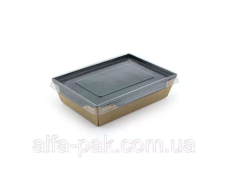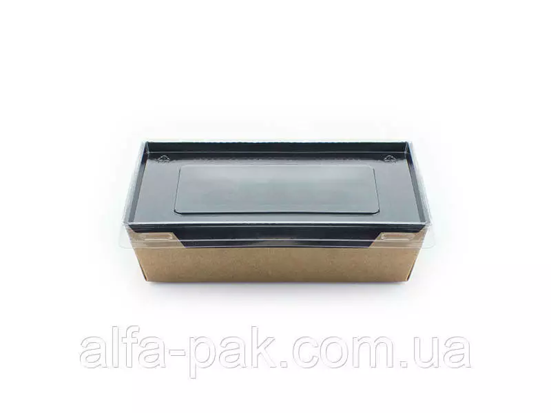 Контейнер прямоугольный крафт-черный с ПЭТ крышкой 750 мл - удобная