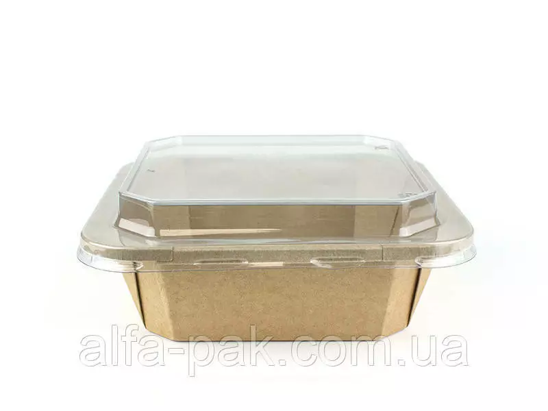 Контейнер прямоугольный крафт с ПЭТ крышкой 1000 мл - удобная и