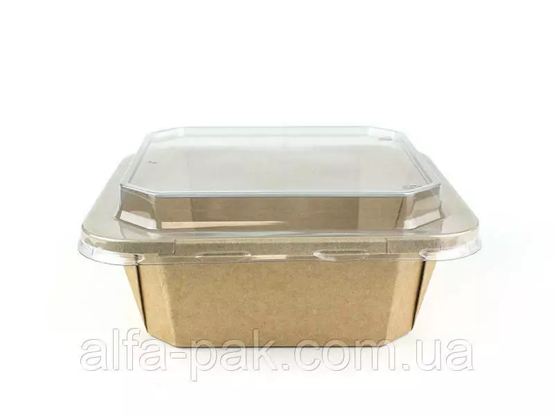 Контейнер прямоугольный крафт с ПЭТ крышкой 1200 мл - удобная и