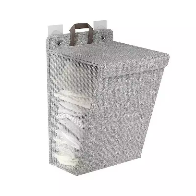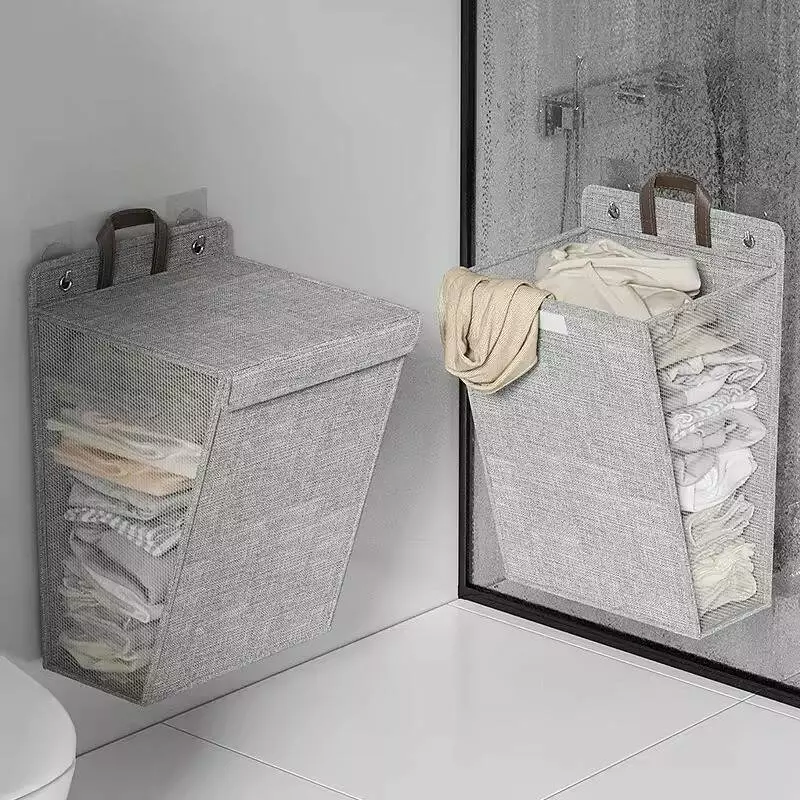 Сірий кошик для білизни на гачках розміром 58x41x15 см поєднує в