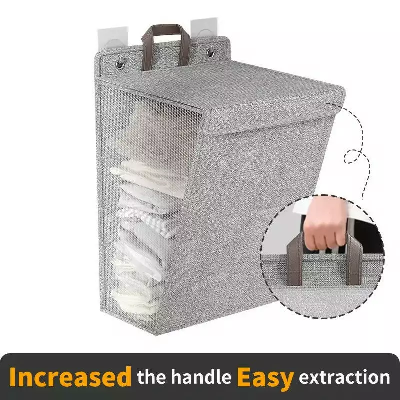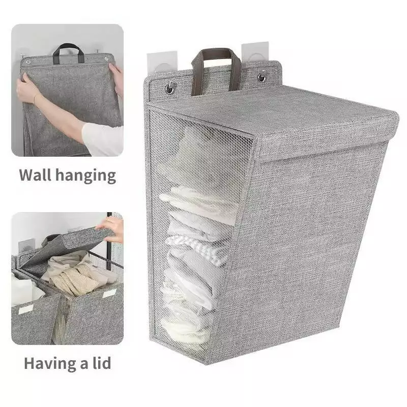 Серая корзина для белья на крючках размером 58x41x15 см сочетает в