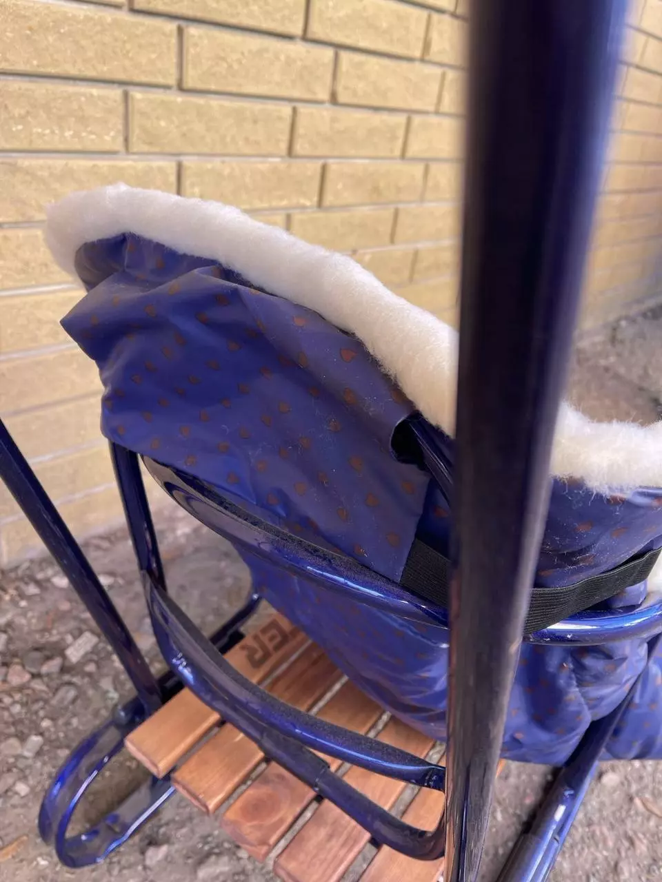 Конверт для санок зі штучної овчини. Зовні поліестрова тканина.