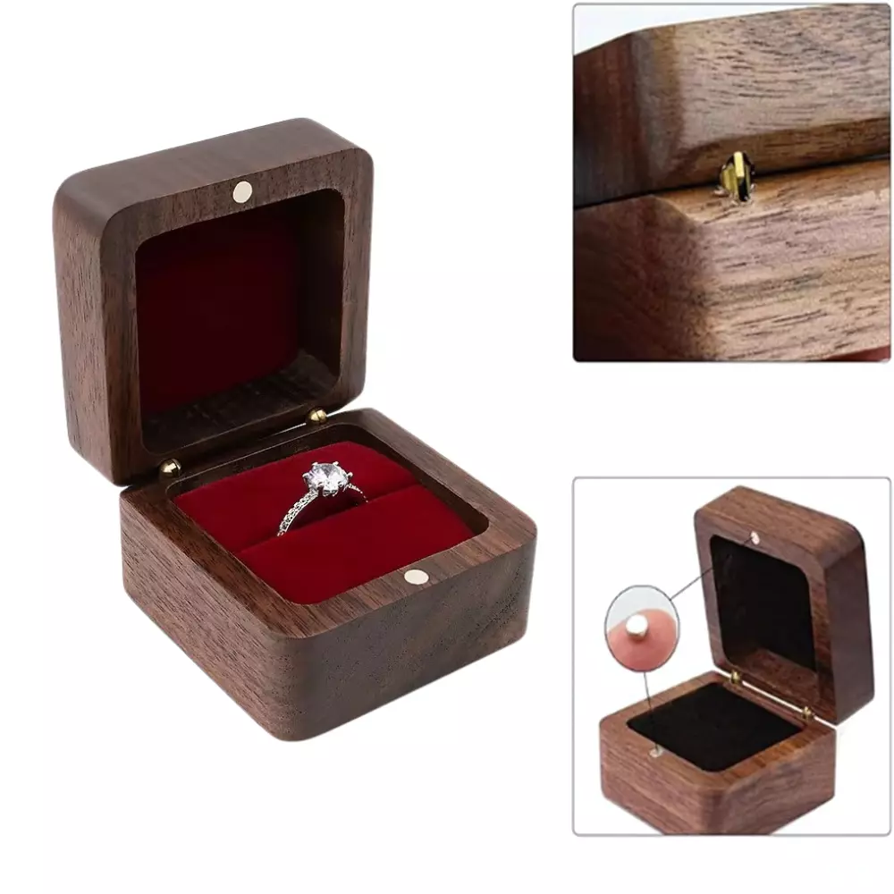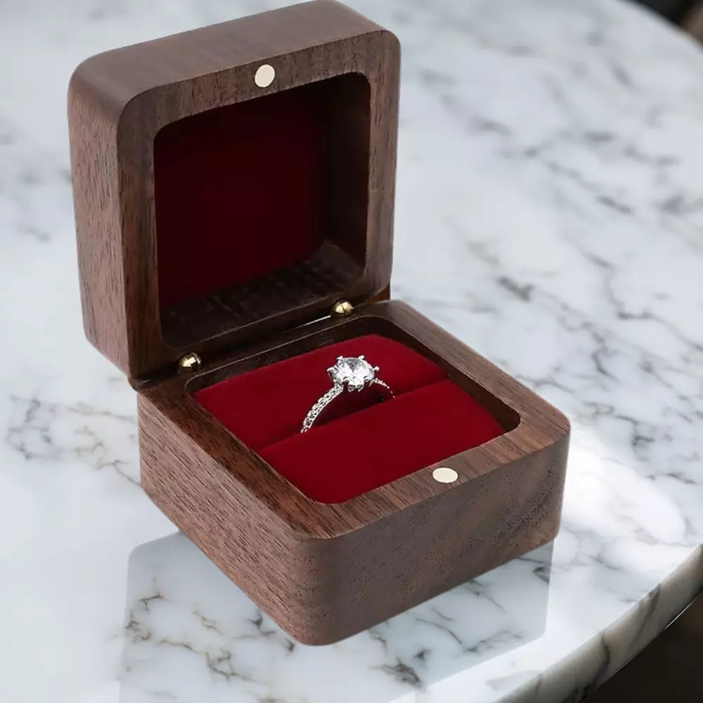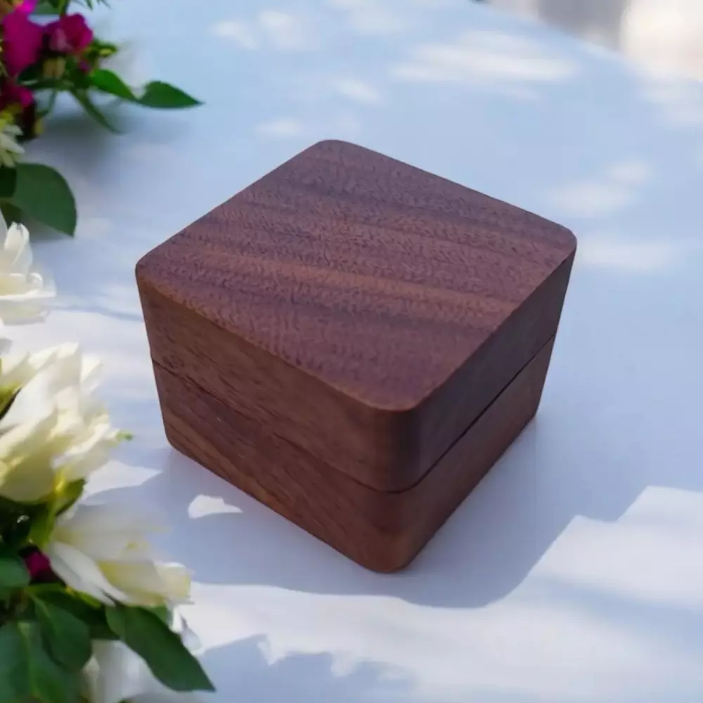 Елегантна скринька для кілець виготовлена з міцного дерева з м'яким