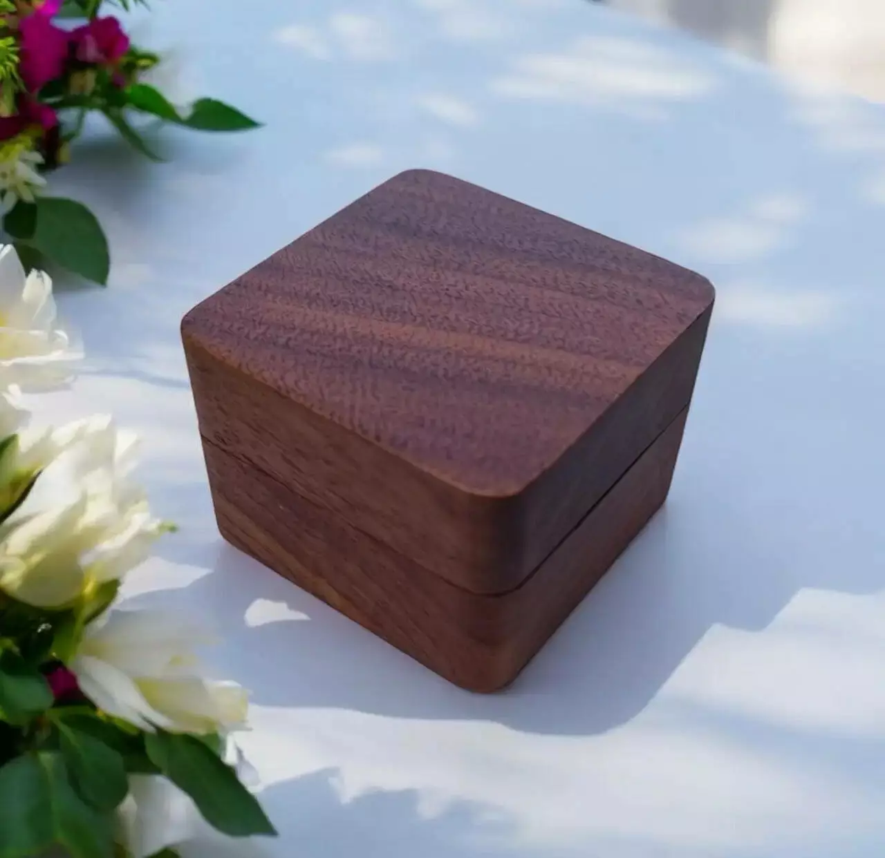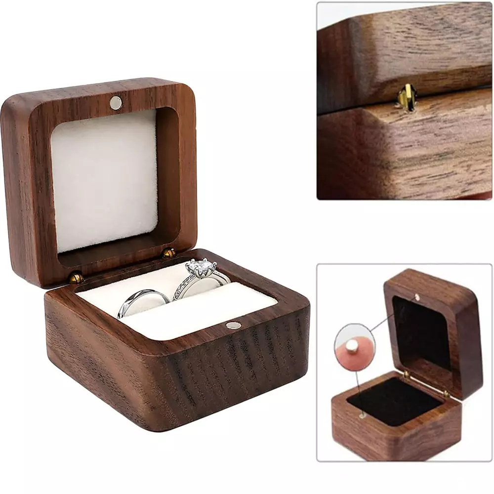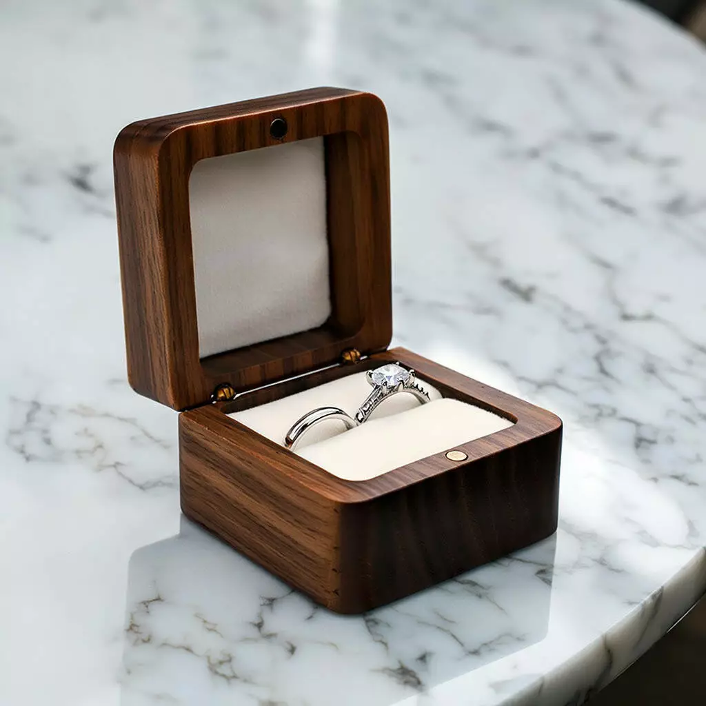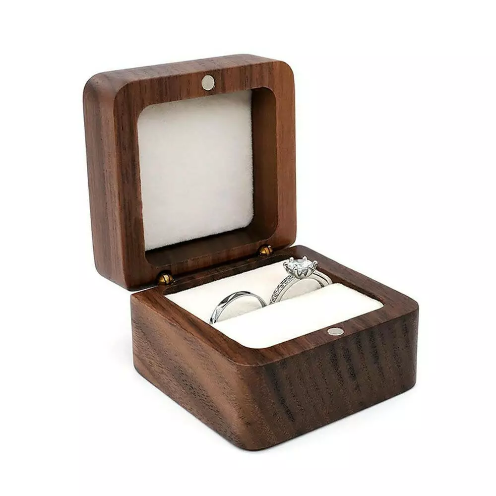 Елегантна скринька для кілець виготовлена з міцного дерева з м'яким