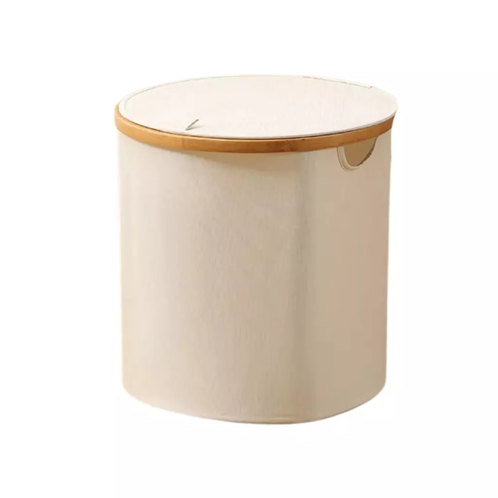 Корзина складная для белья с крышкой и бамбуковыми ручками в белом