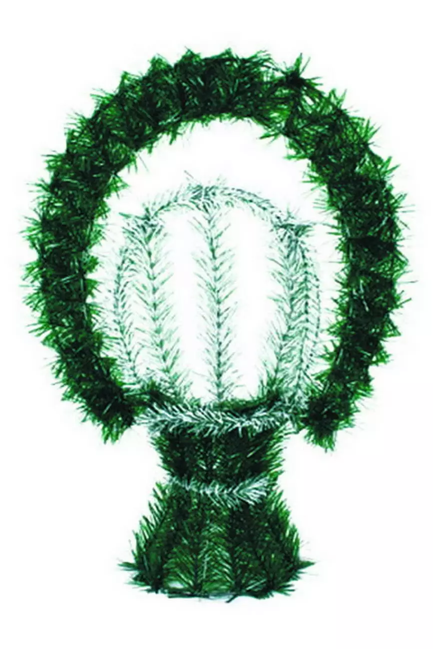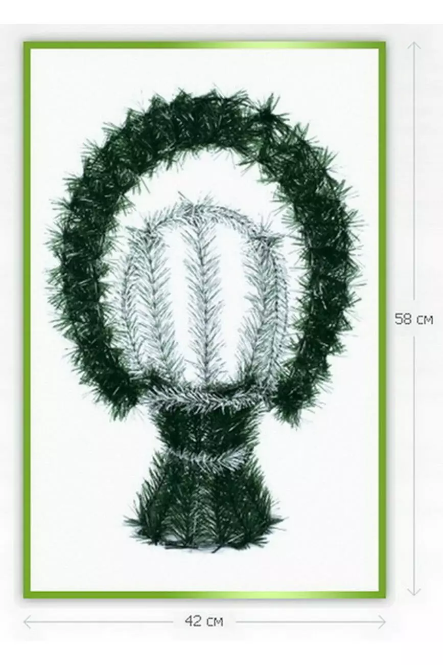 Кошик двокольоровий зі штучної хвої з вазой та широкою подвійною ручкою. На спинці закріплені відрізки хвої. Розмір 58*42*18 см.
