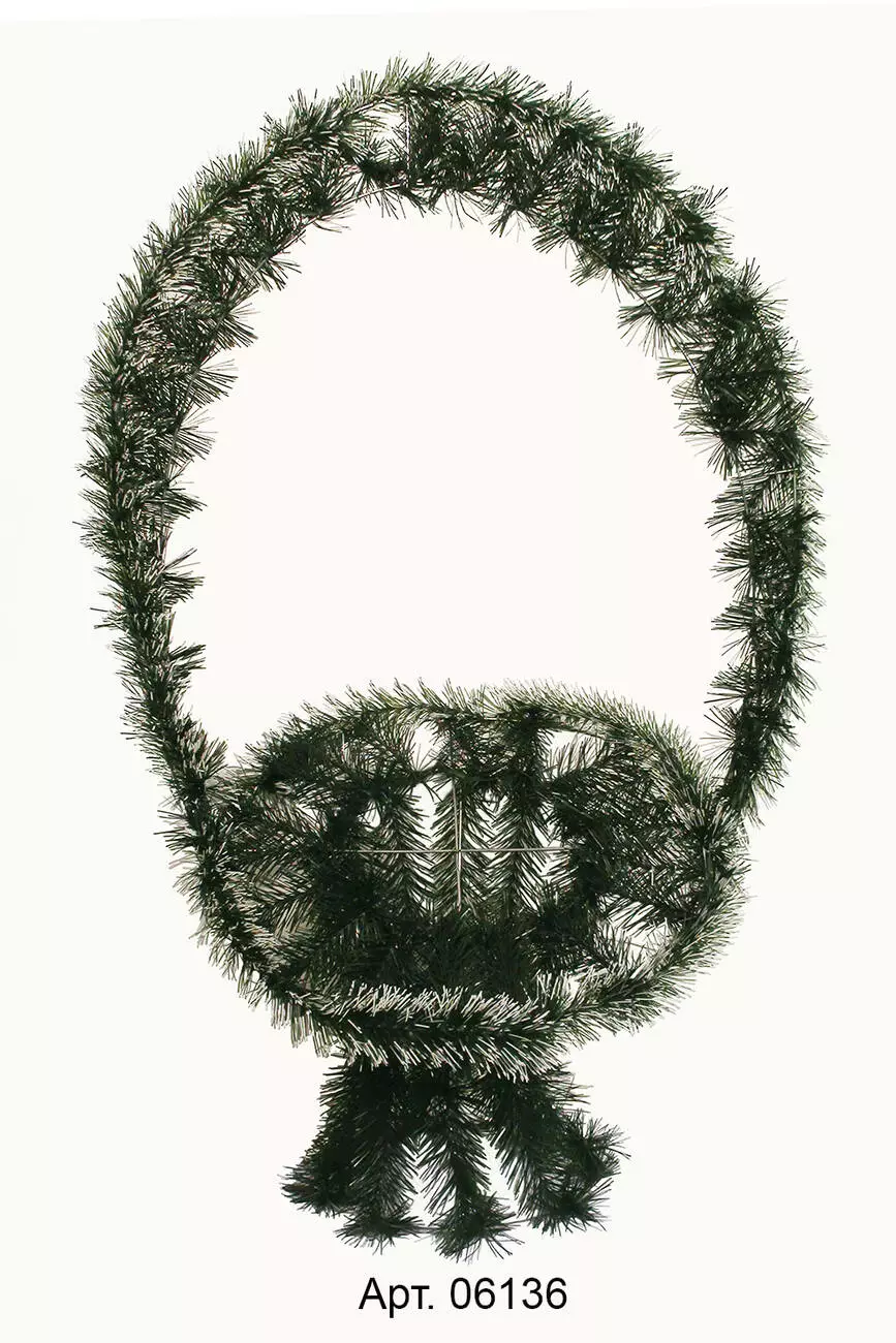 Косий кошик зі штучної хвої у формі вази з широкою заплетеною ручкою та верх вази обшиті кольоровою хвоєю, розмір 75*45*37 см.