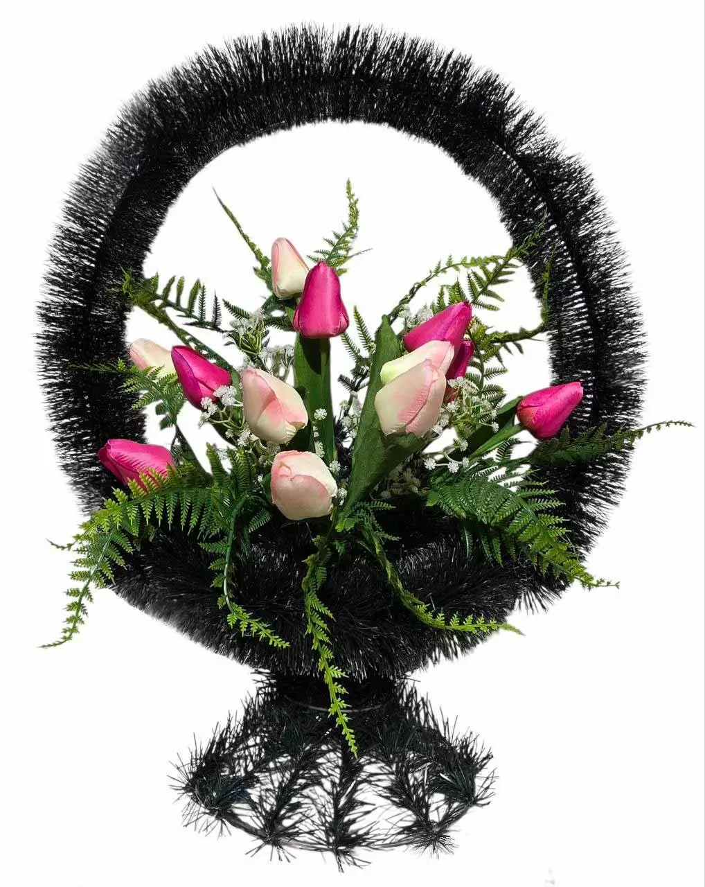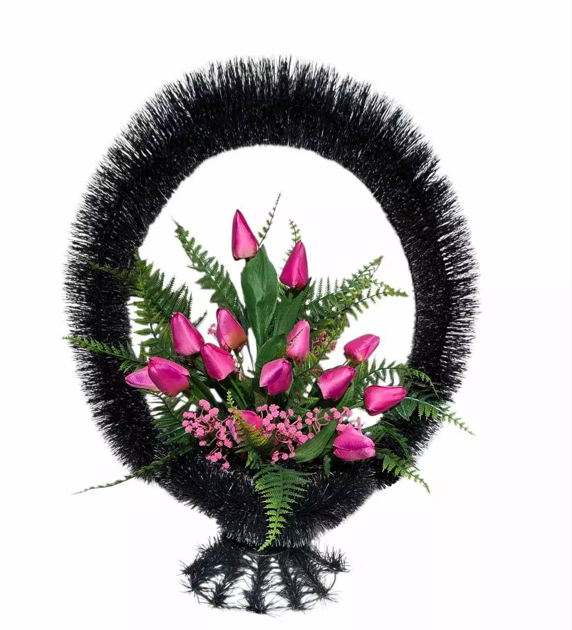 Ритуальний кошик зі штучної хвої розміром 60*49*30 см. Кошик