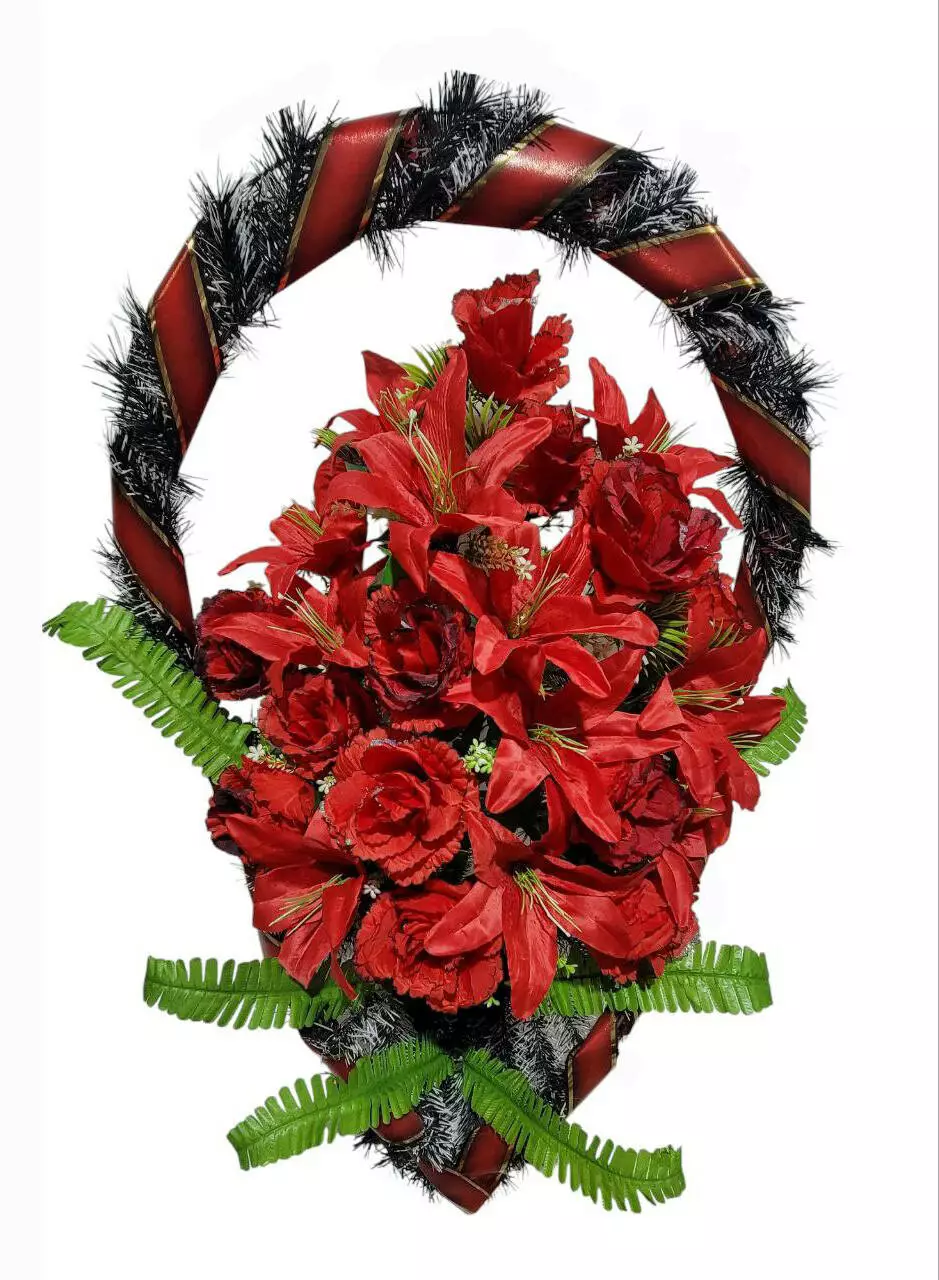 Ритуальний кошик зі штучної хвої розміром 90*60*35 см. Кошик