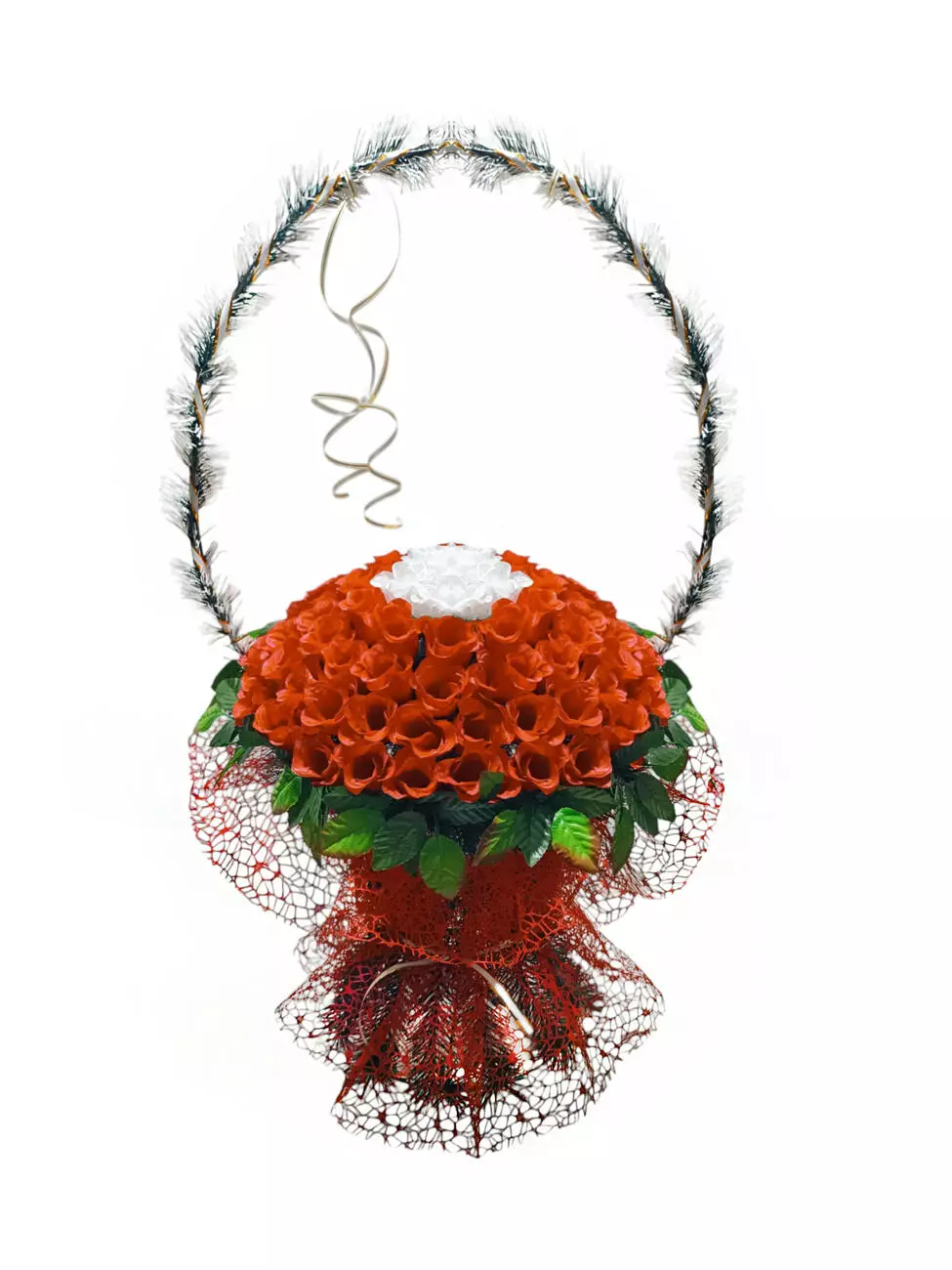 прикрашений бутонами троянд, листям трояндиі, ритуальною стрічкою