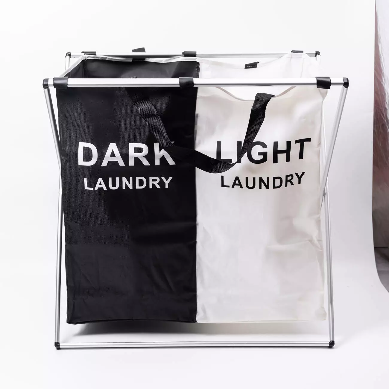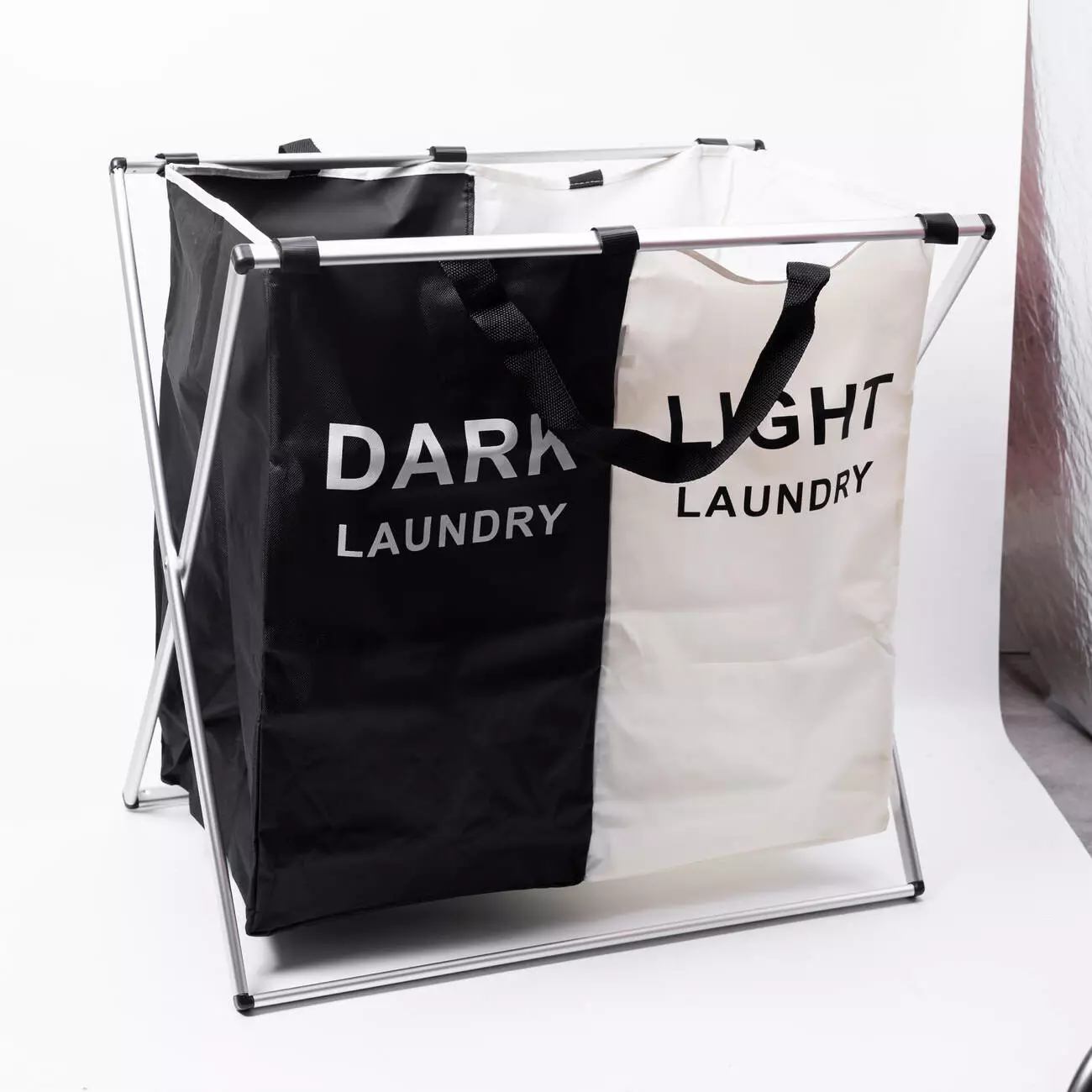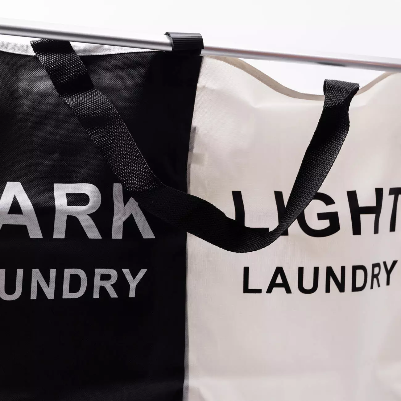 Текстильний кошик для білизни з двома секціями призначений для зручного сортування речей перед пранням. Окремі відділення для чорного та білого одягу допомагають організувати процес і заощадити час. Завдяки міцному каркасу та тканинному матеріалу кошик поєднує практичність і легкість у догляді.