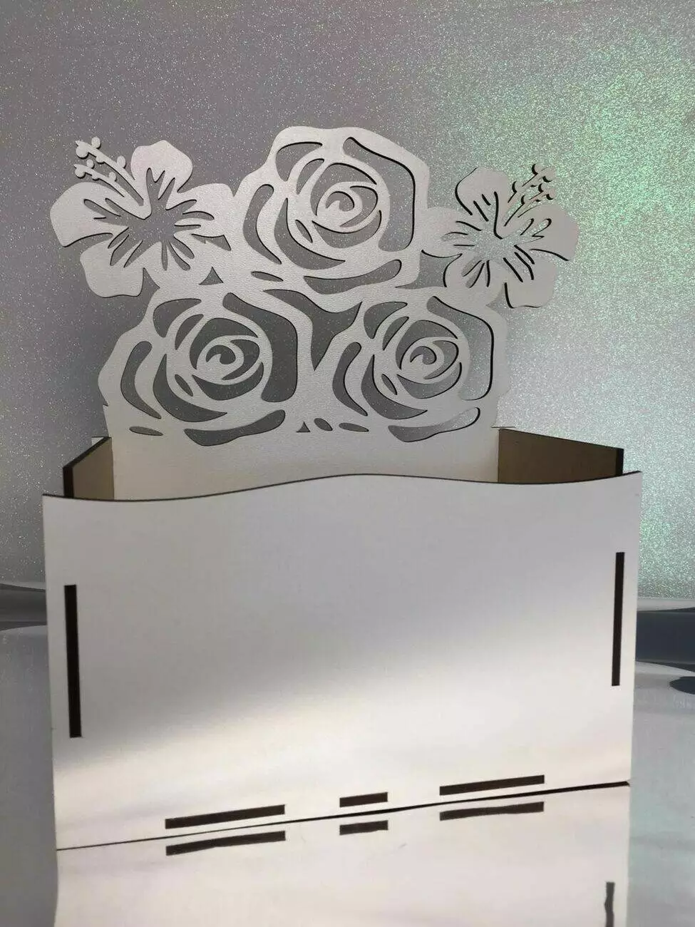 Кошик для квітів виготовлений з міцного мдф білого кольору.