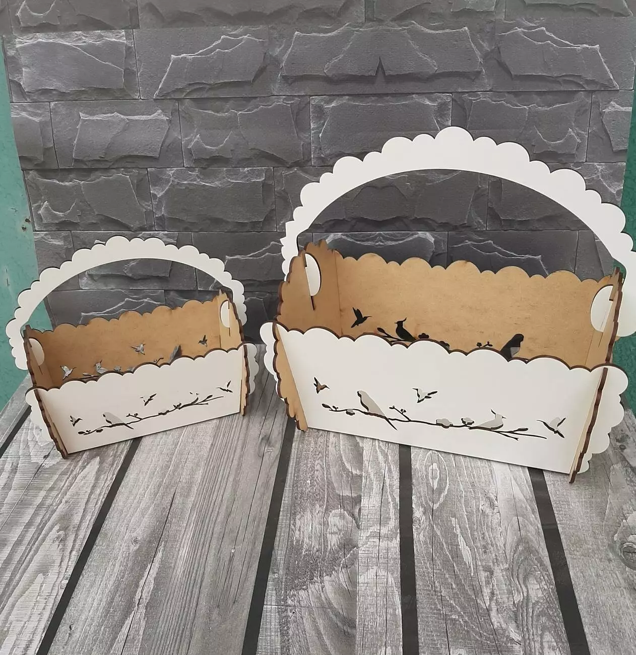 Кошик для квітів виготовлений з міцного мдф білого кольору.