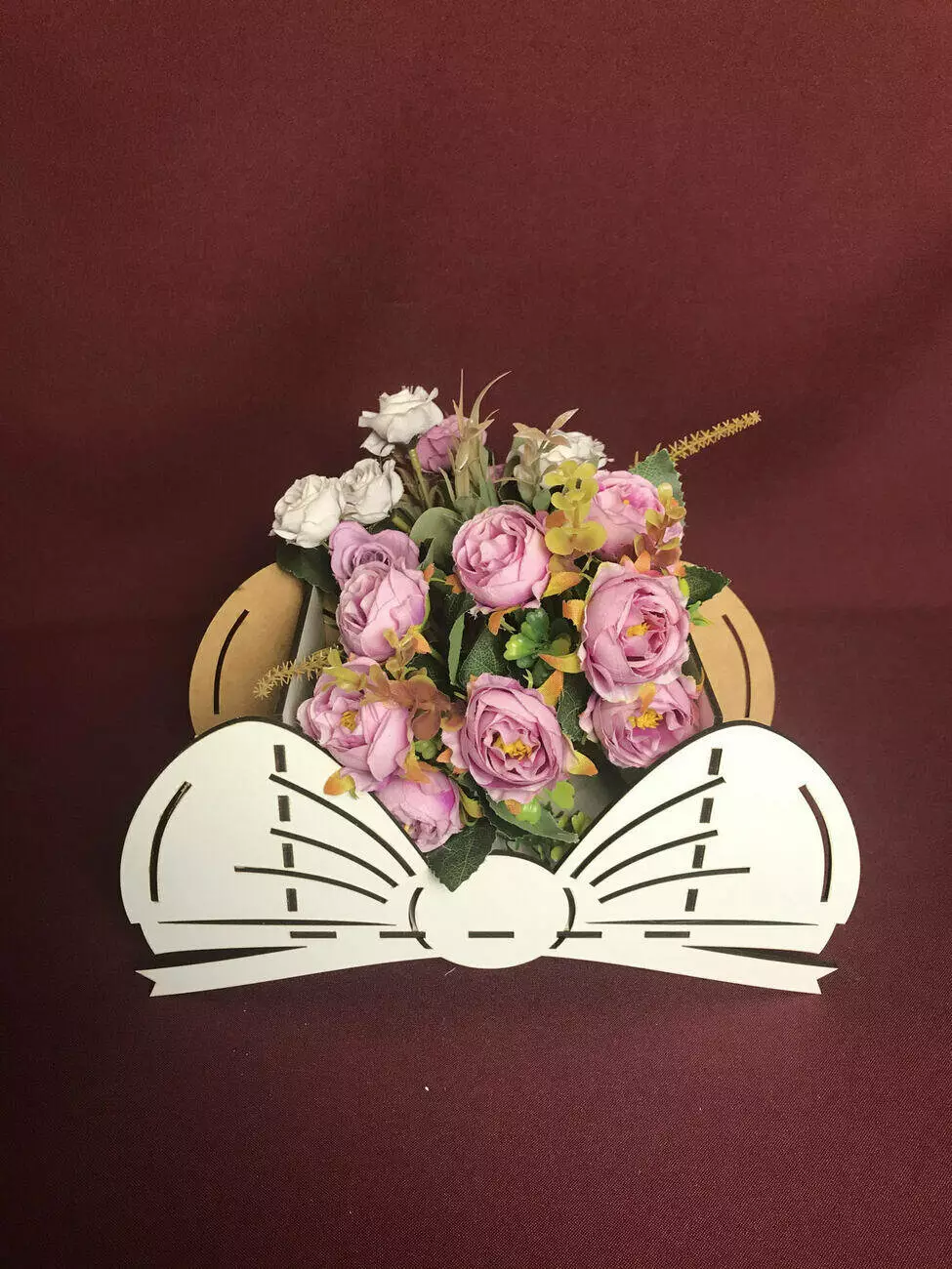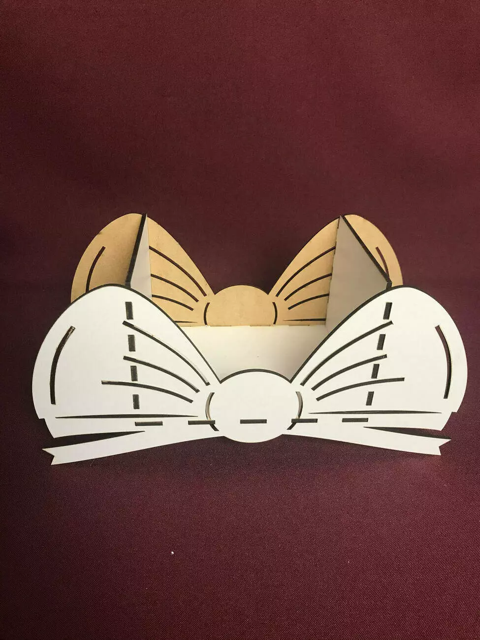 Кошик для квітів у вигляді бантика виготовлений з міцного мдф білого кольору.