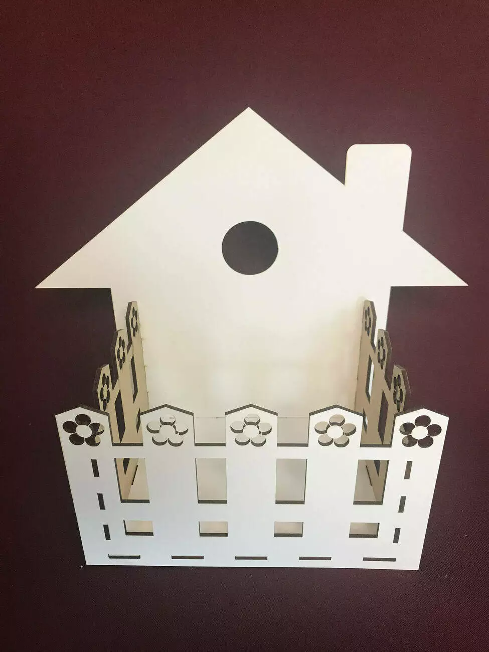 Кошик для квітів у вигляді будиночка виготовлений з міцного мдф білого кольору