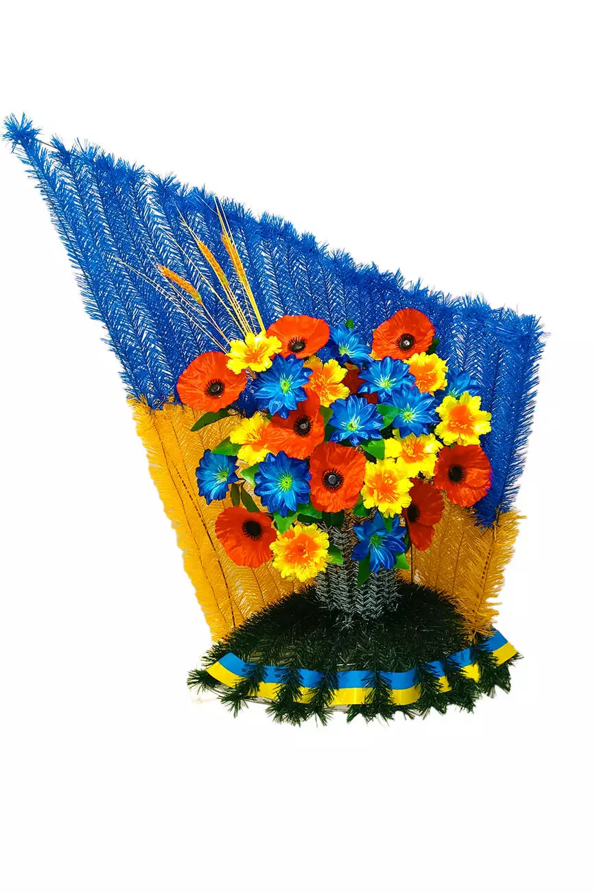 Ритуальний кошик зі штучної хвої з флагом України, розміром