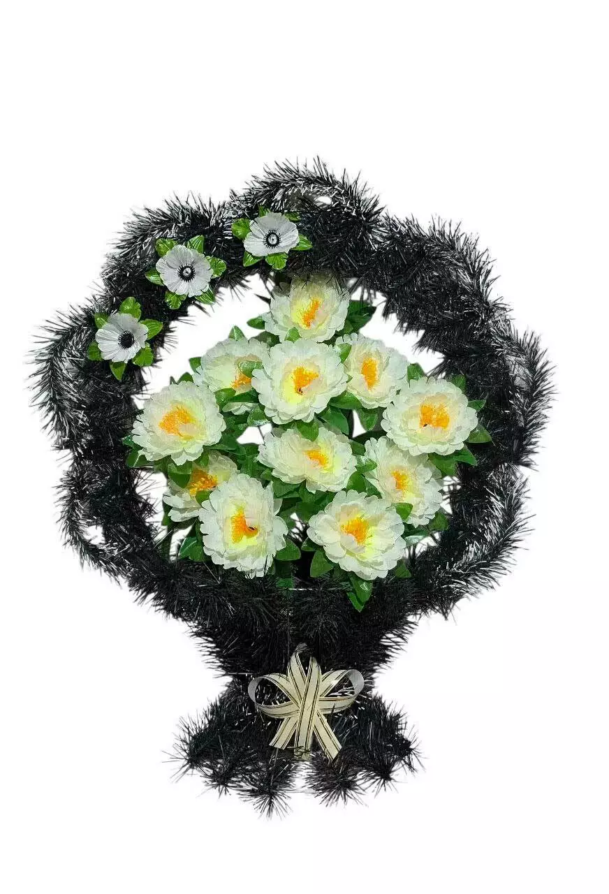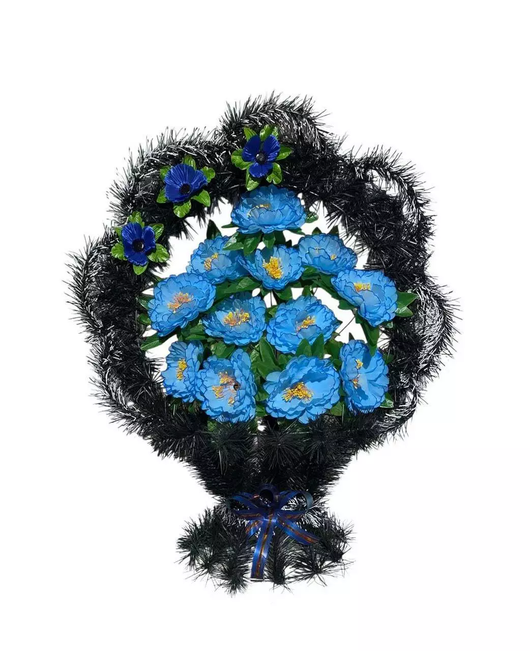 півонії, волошки, листям осоки та ритуальною стрічкою. Кольорову