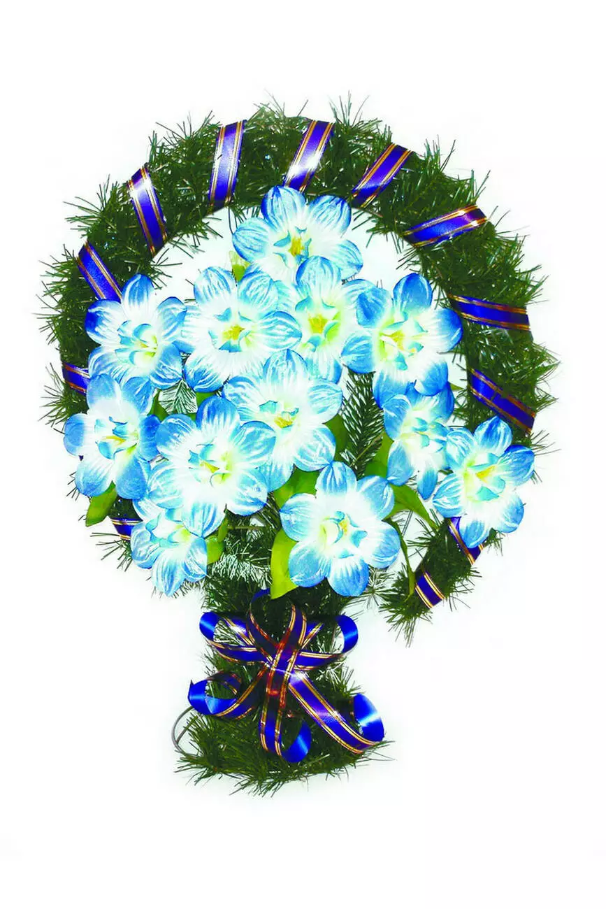 прикрашений букетом мальви та ритуальною стрічкою. Кольорову гаму