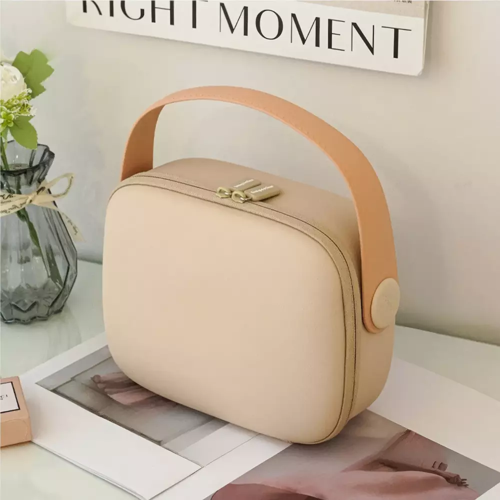 делает косметичку стильным аксессуаром, а бежевый цвет добавляет