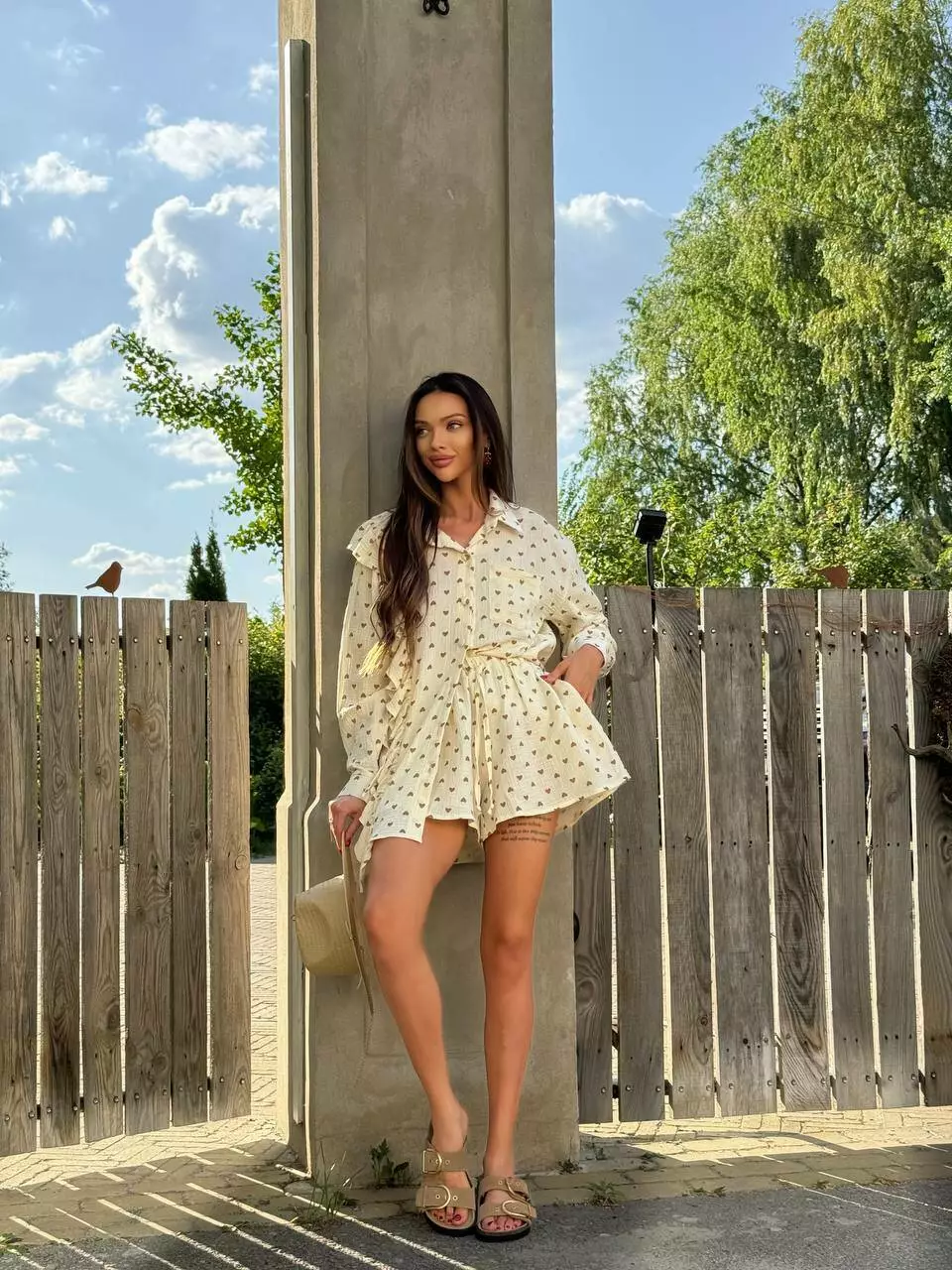 Сорочка вільного крою з довгим рукавом та шортики на гумці, з кишенями.