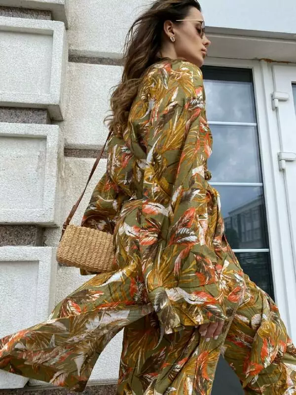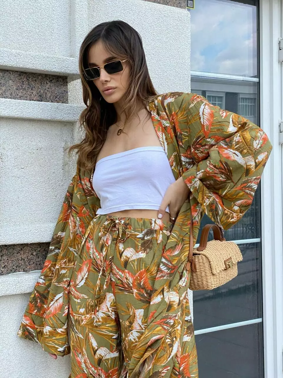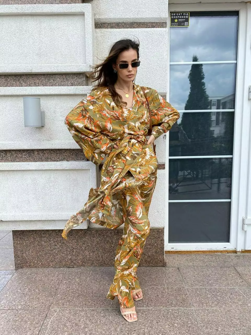 Літній трендовий костюм зі штанами та накидкою під пояс