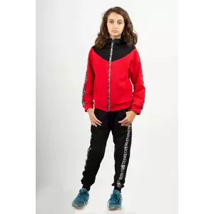 На рукавах брендована стрічка. Без кишень.Низ костюма - чорні штани