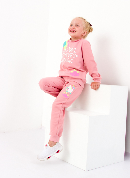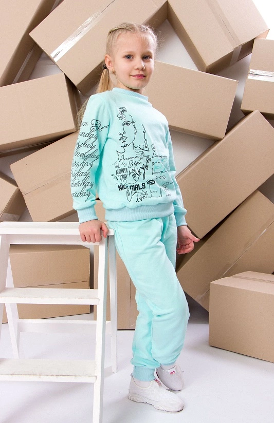 Рухливі дітки, які так люблять бігати, грати і всіляко досліджувати навколишній світ, не терплять скутості рухів. Саме тут на допомогу приходять спортивні костюми від торгової марки «Трикотажний Край». Вільний і зручний, комплект з світшоту і брюк з оригінальним принтом - те, що потрібно. Джемпер з круглим вирізом горловини і штани вільного крою доповнені широкими еластичними манжетами. Для пошиття моделі використовувалося високоякісне бавовняне полотно - футер, що є безпечним для організму і чутливої ​​шкіри дитини. Взимку і в період міжсезоння в такому чудовому костюмі дитині буде тепло і комфортно, він прекрасно підходить в якості домашнього одягу, наряду для ігор і прогулянок, забезпечує модний і стильний вигляд, не обмежує рухів активної дитини.