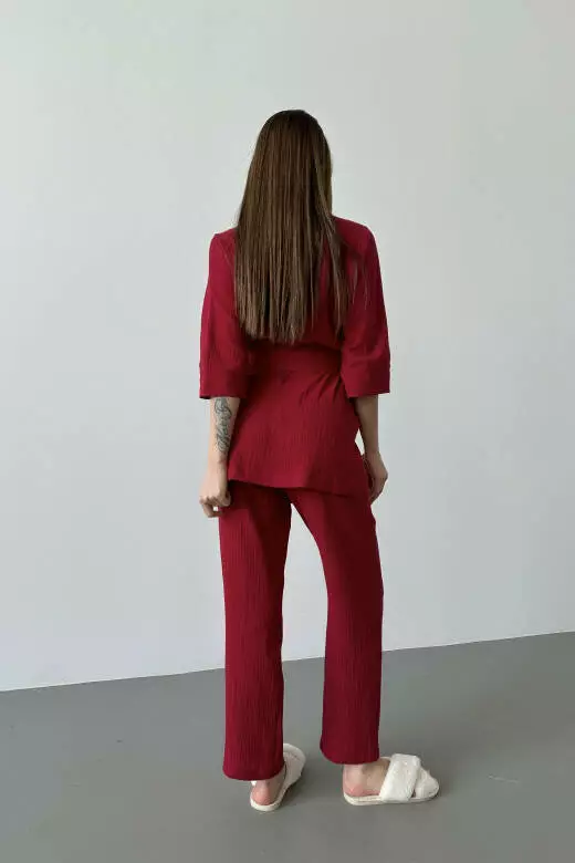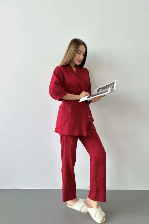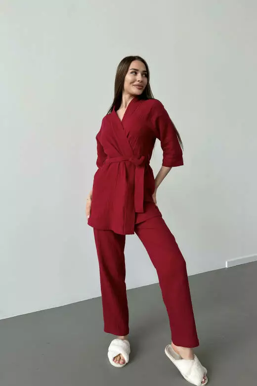 Подчеркните свой стиль и обеспечьте себе максимальный комфорт с нашим пижамным муслиновым комплектом. Этот комплект включает в себя короткий кимоно-халат с поясом и прямые штаны. Изготовленный из высококачественного мягкого муслина, он обеспечит вам комфорт и удобство каждый день. Кимоно с поясом придаст вашему образу шарма и женственности, а прямые штаны обеспечат свободную посадку и комфорт во время отдыха. Сделайте свой день еще приятнее с нашим стильным пижамным комплектом