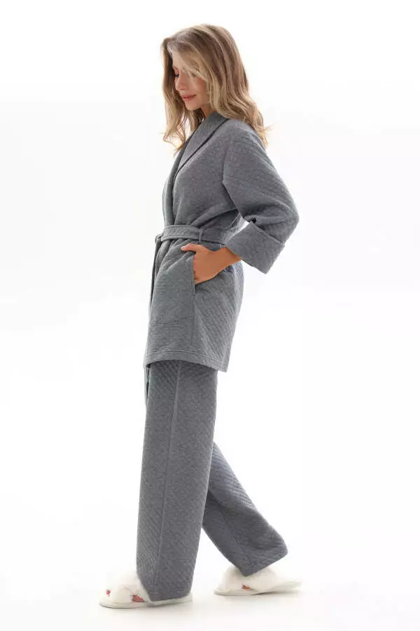 Костюм домашній жіночий капітоній кардиган на запах та штани German Volf 25022 темно-сірий M 735184
