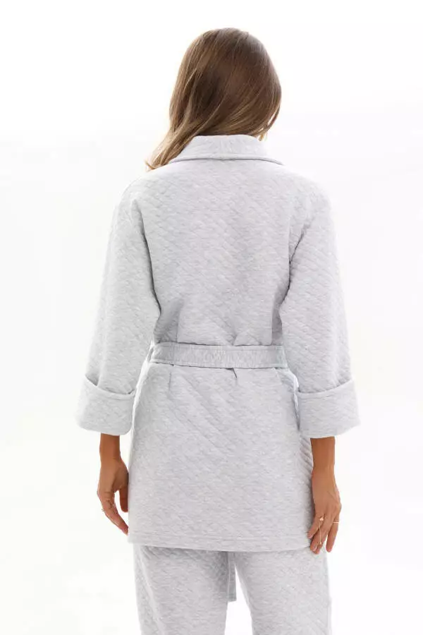 кардигана на запах із поясом, що красиво підкреслює талію, та