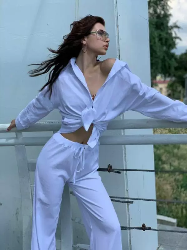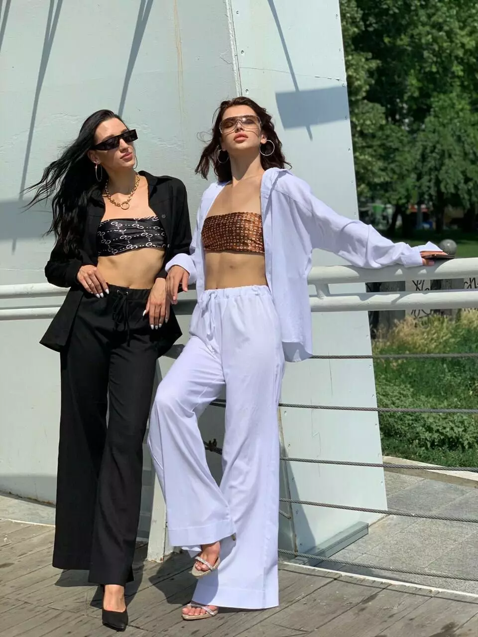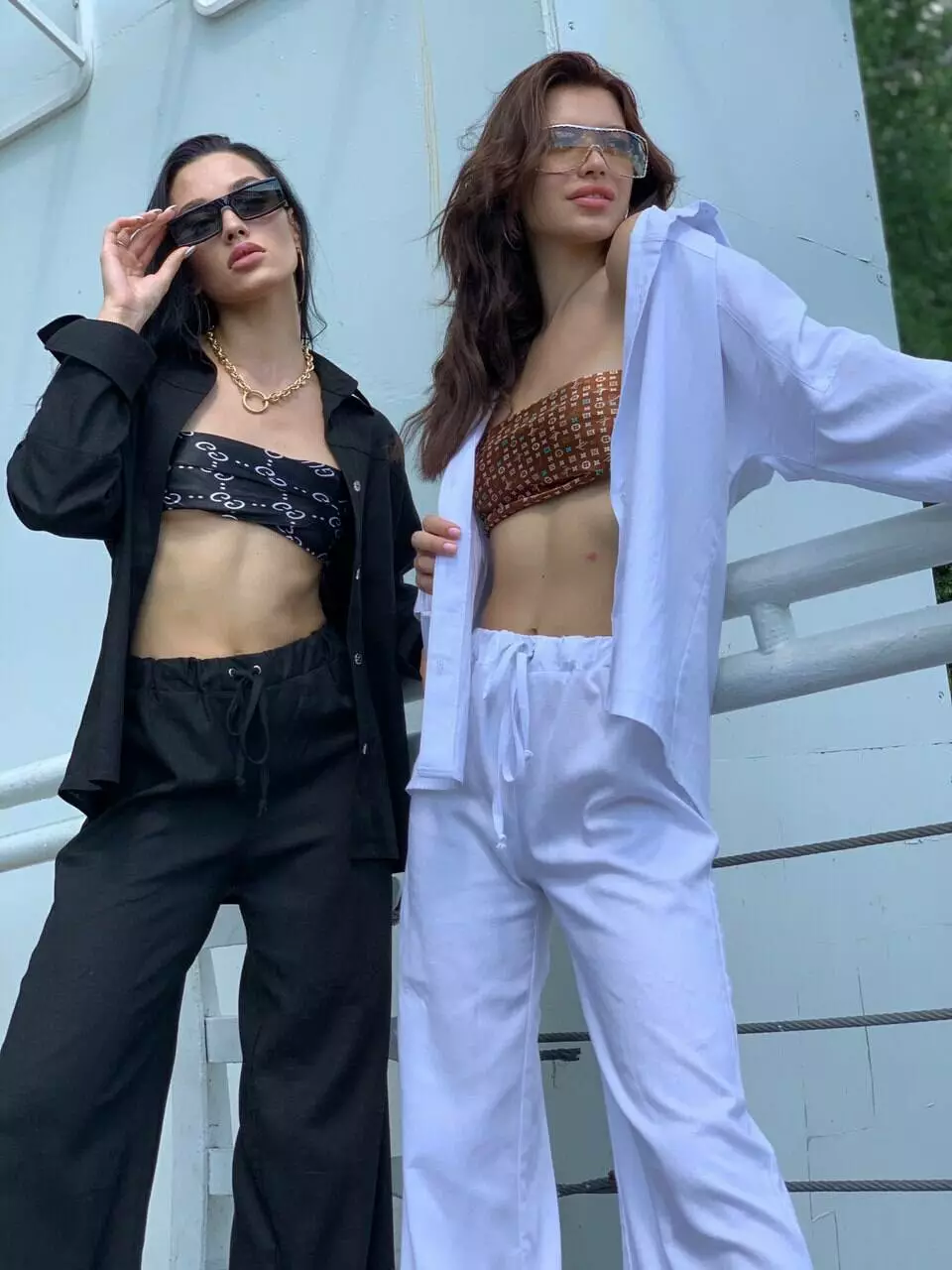 КОСТЮМ з льону в трендовомвиконанні брюк кльош и рубашка oversize
