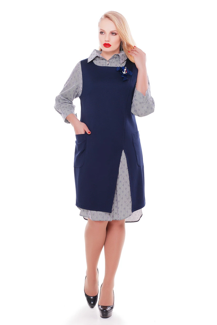 Костюм двойка Марика синий/серый 52
