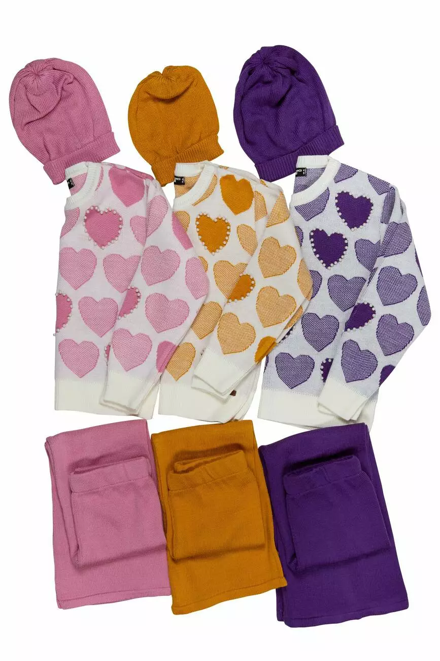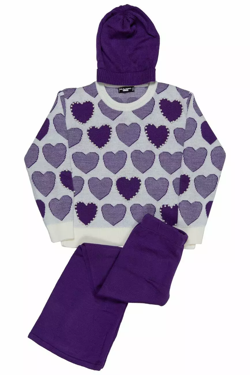 Малюнок - серця. Декор - білі перлинки. Светр із круглою горловиною