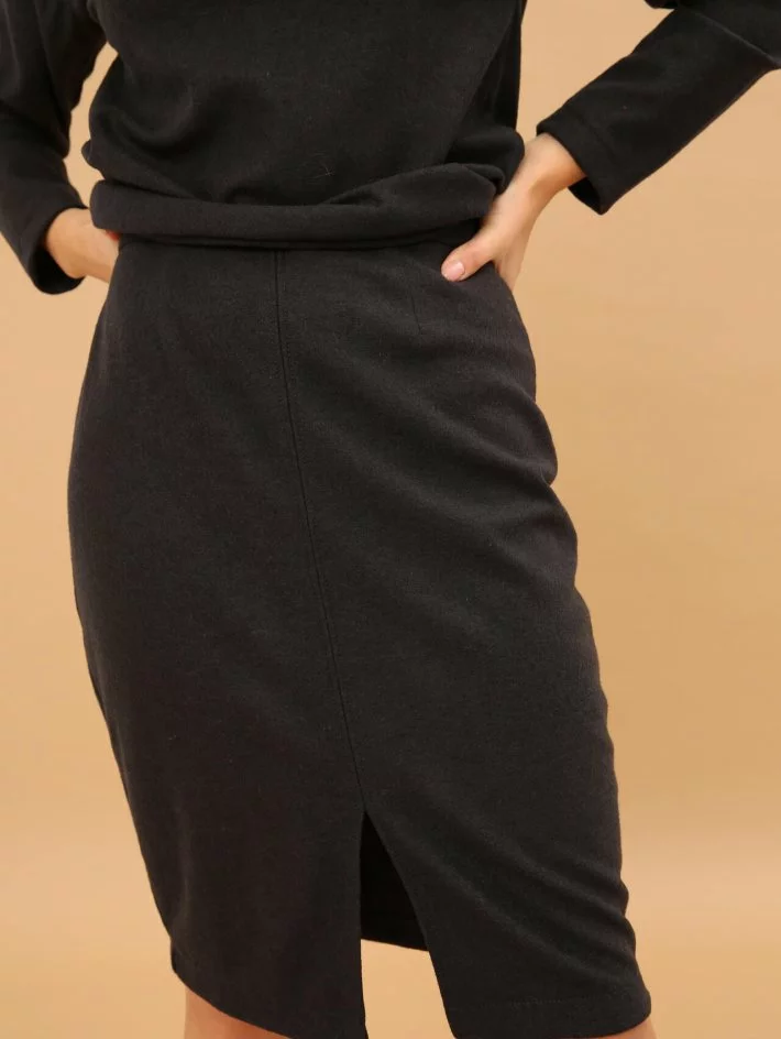 довгим рукавом в комплекті зі спідницею-олівцем з розрізом спереду.