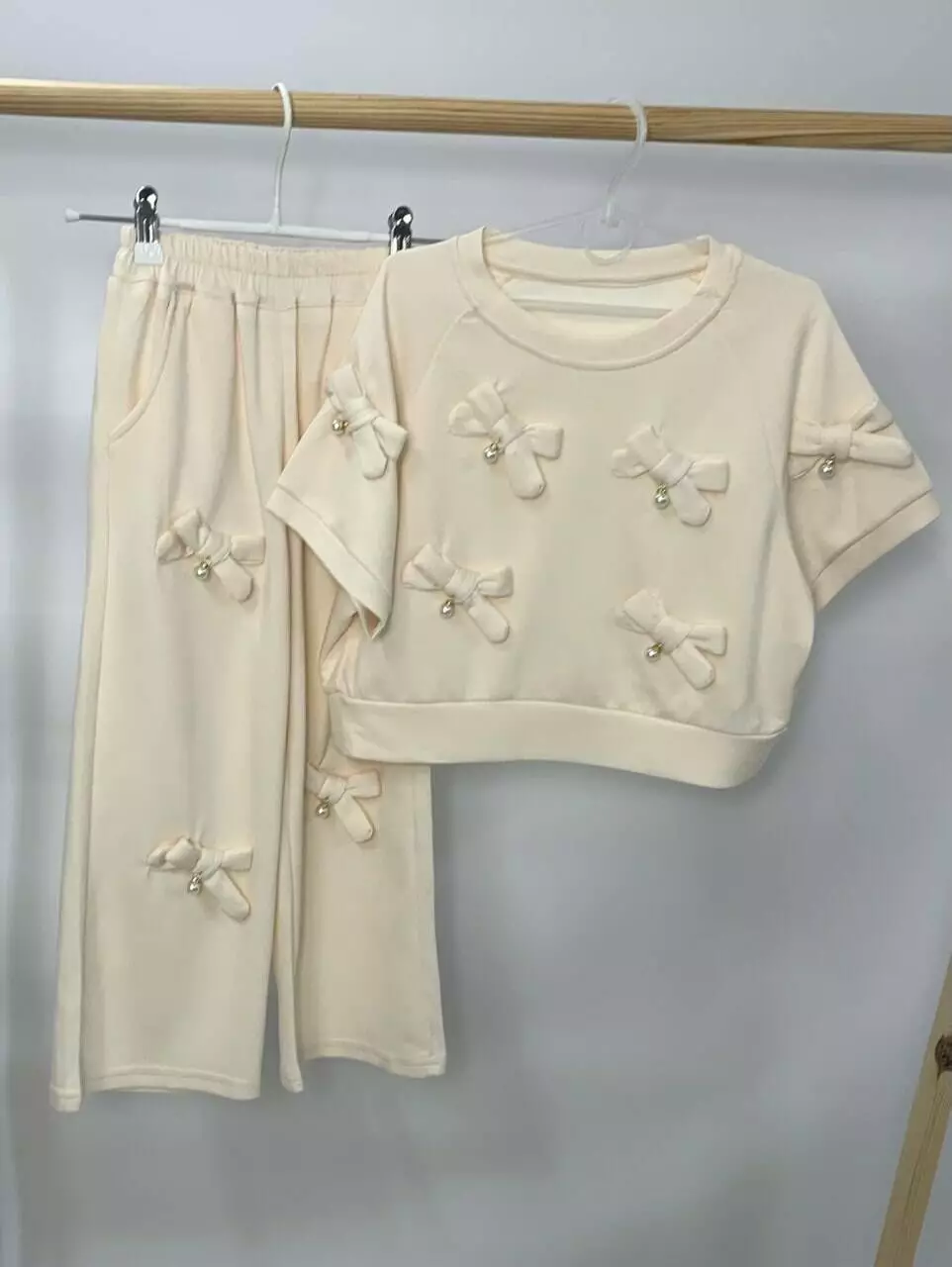 штанів. І топ, і штани прикрашені об’ємними бантиками,